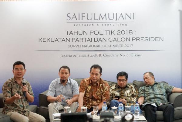 Pernyataan ini disampaikan Dr. Djayadi Hanan, Direktur Utama Saiful Mujani Research and Consulting (SMRC), dalam presentasi survei nasional SMRC, Selasa, 2 Januari 2018, di Jakarta.