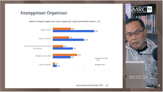 Daya tarik NU, menurut Saiful, adalah pada jumlah massa yang dimilikinya. Dia menunjukkan bahwa dalam survei SMRC pada Desember 2022, warga yang mengaku sebagai anggota aktif NU sebanyak 8,6 persen dan mengaku sebagai anggota tapi tidak aktif sebesar 11,7 persen. Total warga yang mengaku sebagai anggota NU sebesar 20,3 persen. Sementara yang mengaku sebagai anggota serikat pekerja, buruh, dan tani sebanyak 14,7 persen; Muhammadiyah 3,1 persen; organisasi masjid 22,8 persen; dan majelis taklim sekitar 28,7 persen.