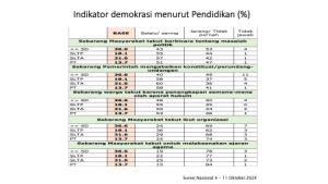 Lebih jauh Saiful menunjukkan bahwa otokratisasi atau proses menuju keadaan Indonesia yang otokratik atau otoritarian ini dirasakan terutama oleh warga yang berpendidikan SLTP ke atas. Ada 51 persen warga yang berpendidikan perguruan tinggi yang menyatakan selalu atau sangat sering sekarang masyarakat takut bicara soal politik, sementara hanya 43 persen warga berpendidikan SD yang menyatakan demikian. Dari kelompok berpendidikan perguruan tinggi yang merasa sekarang pemerintah selalu atau sering mengabaikan konstitusi atau perundang-undangan 58 persen, dari kalangan lulusan SD 40 persen. Sebanyak 53 persen warga dari lulusan perguruan tinggi yang menyatakan sekarang warga selalu atau sering takut karena penangkapan semena-mena aparat hukum, dari kelompok lulusan SD hanya 46 persen. Sementara untuk pertanyaan tentang ikut organisasi dan melaksanakan ajaran agama, tidak terlihat perbedaan respons yang mencolok dari tingkat pendidikan yang berbeda.