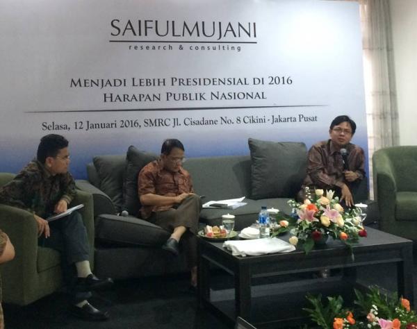 Temuan ini disampaikan dalam presentasi survei nasional yang disampaikan Djayadi Hanan, Direktur Utama Saiful Mujani Research and Consulting (SMRC), pada 12 januari 2016 di Jakarta. Survei ini didanai sendiri oleh SMRC dan dilakukan di seluruh provinsi di Indonesia dengan melibatkan 1220 responden, pada 10-20 desember 2015.